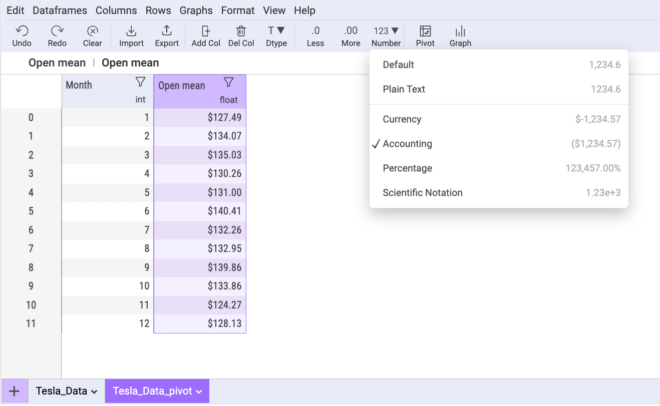 Here’s how to add accounting formatting to your pivot table with Mito: