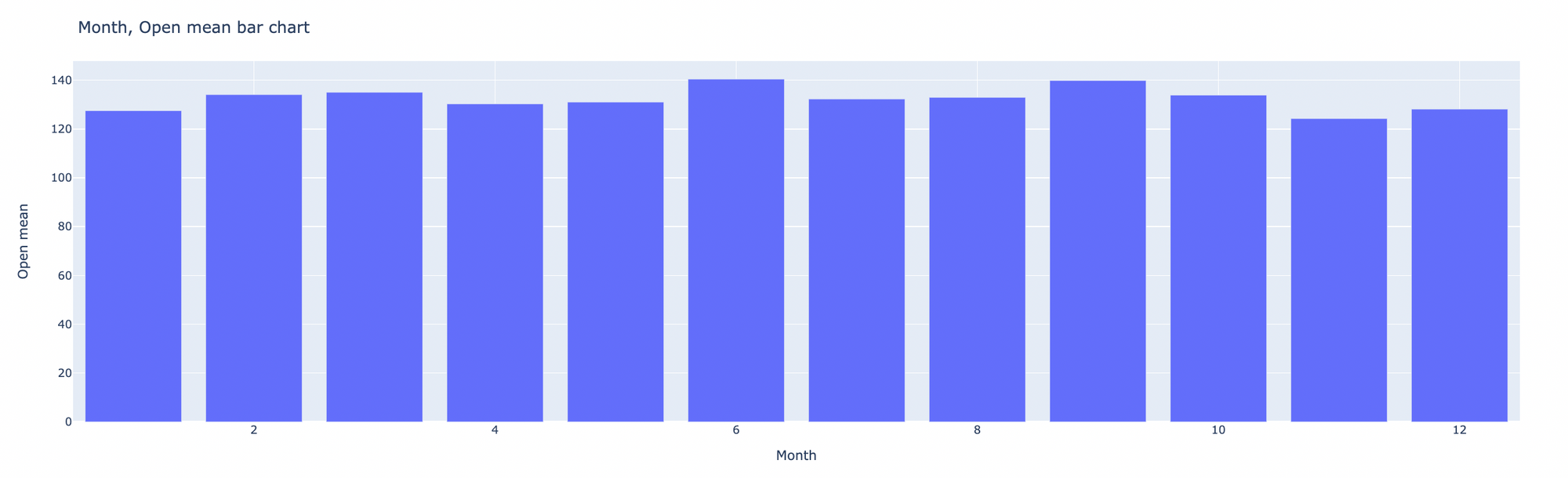 title='Month, Open mean bar chart',