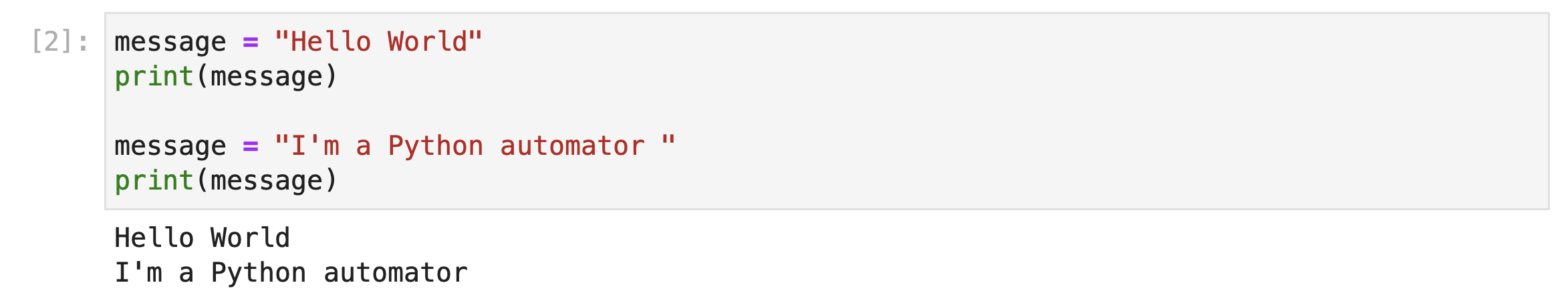 print("Received message: ", message)But when we execute the code print_message("Hello World") we can think about running the following code. Notice that the message variable, is replaced with "Hello World".