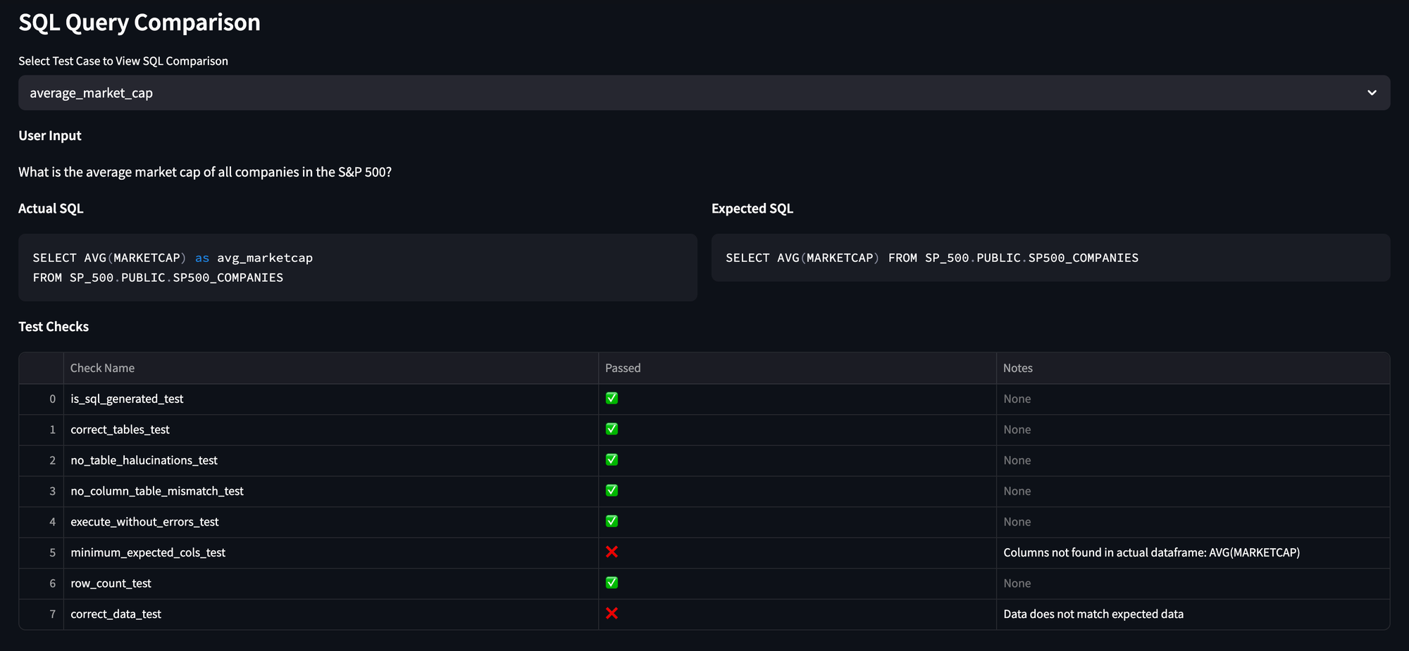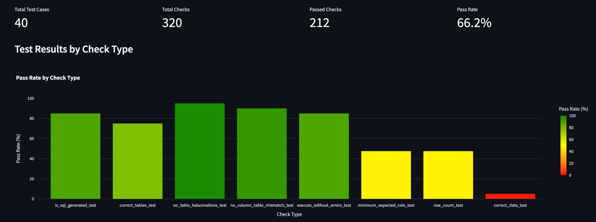 We revisited evals while tackling SQL generation. With many prompt variations to test, we needed a system that provided actionable insight—not just pass/fail stats.